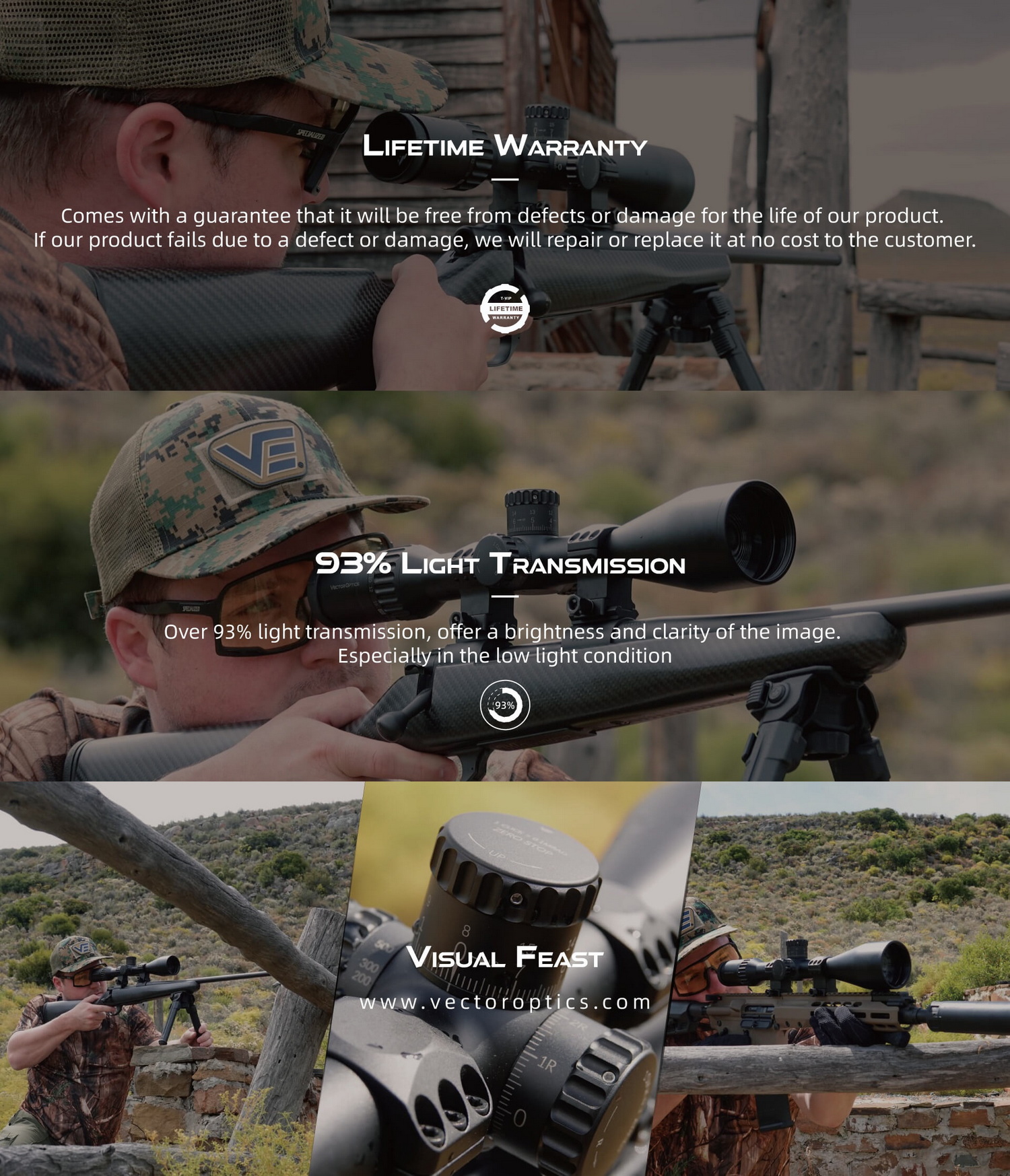 - etched vet-btr reticle, BDC สำหรับการซื้อเป้าหมายที่รวดเร็ว, 0.2 mil center dot สำหรับการเล็งอย่างแม่นยำออกแบบมาเพื่อการถ่ายภาพที่แม่นยำ