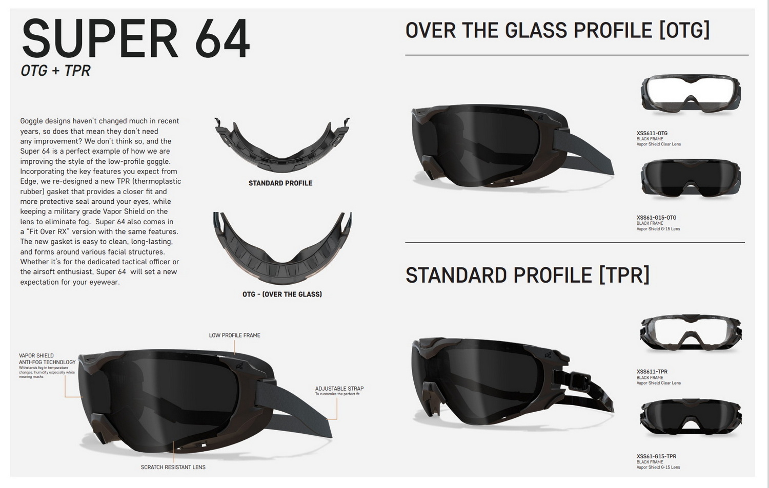 - แว่นกันแดด และกันสะเกตกระสุนรุ่น (Super 64 OTG)