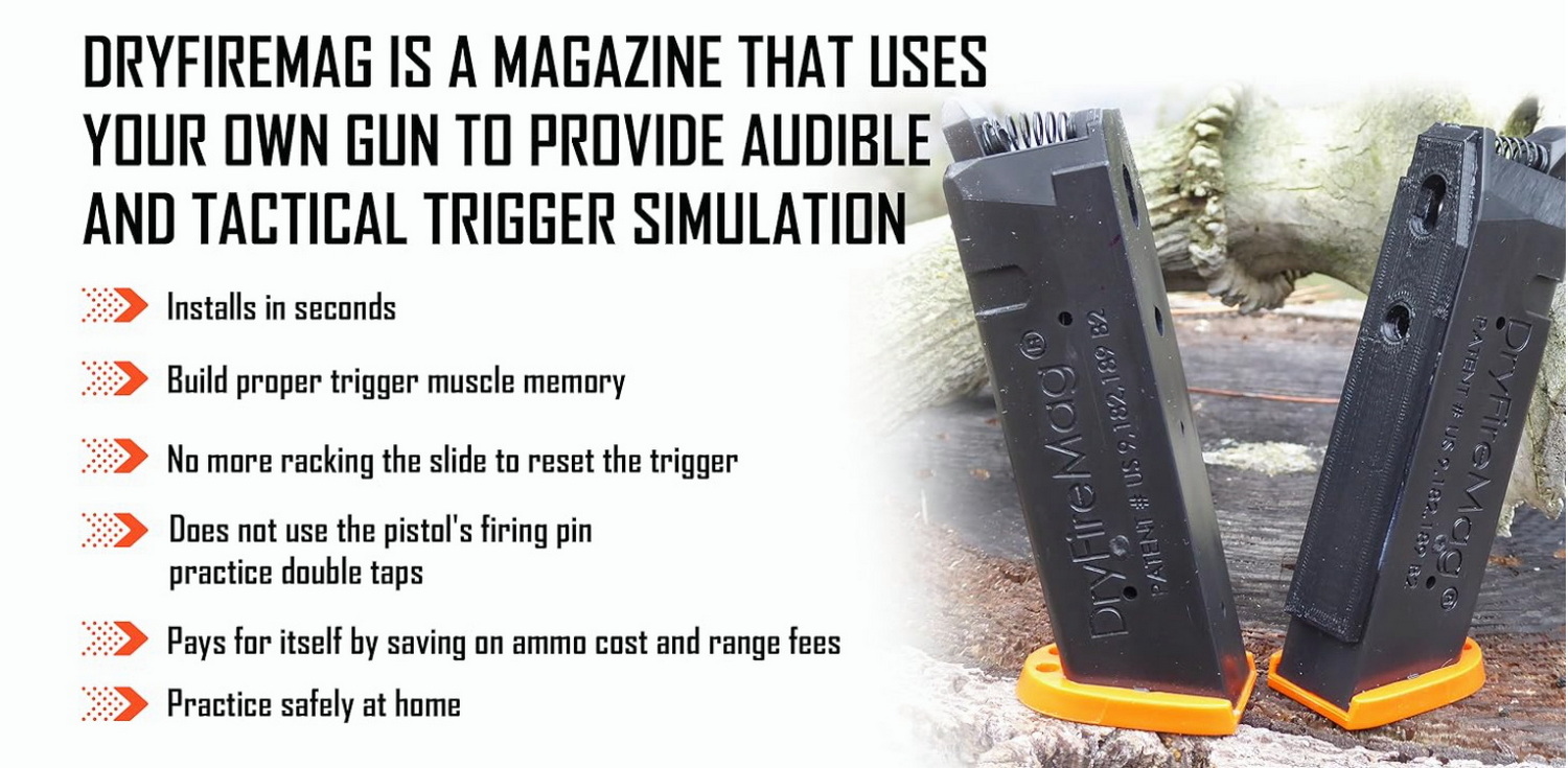 - NO MORE RACKING THE SLIDE - DryFireMag resets the trigger without having to cycle or rack the slide so you can practice double taps and realistic multiple shots