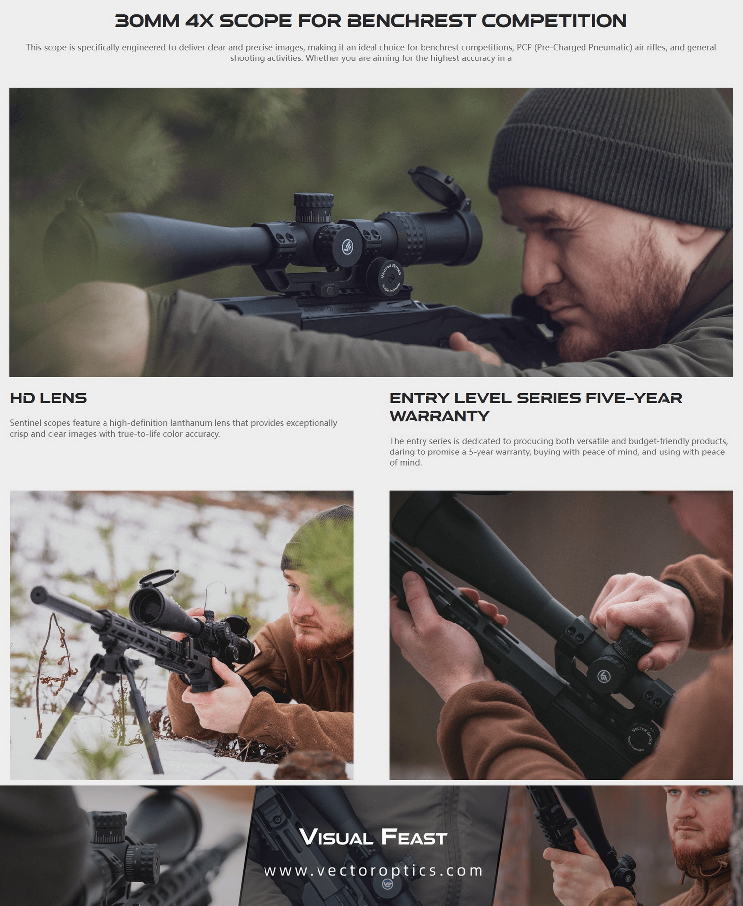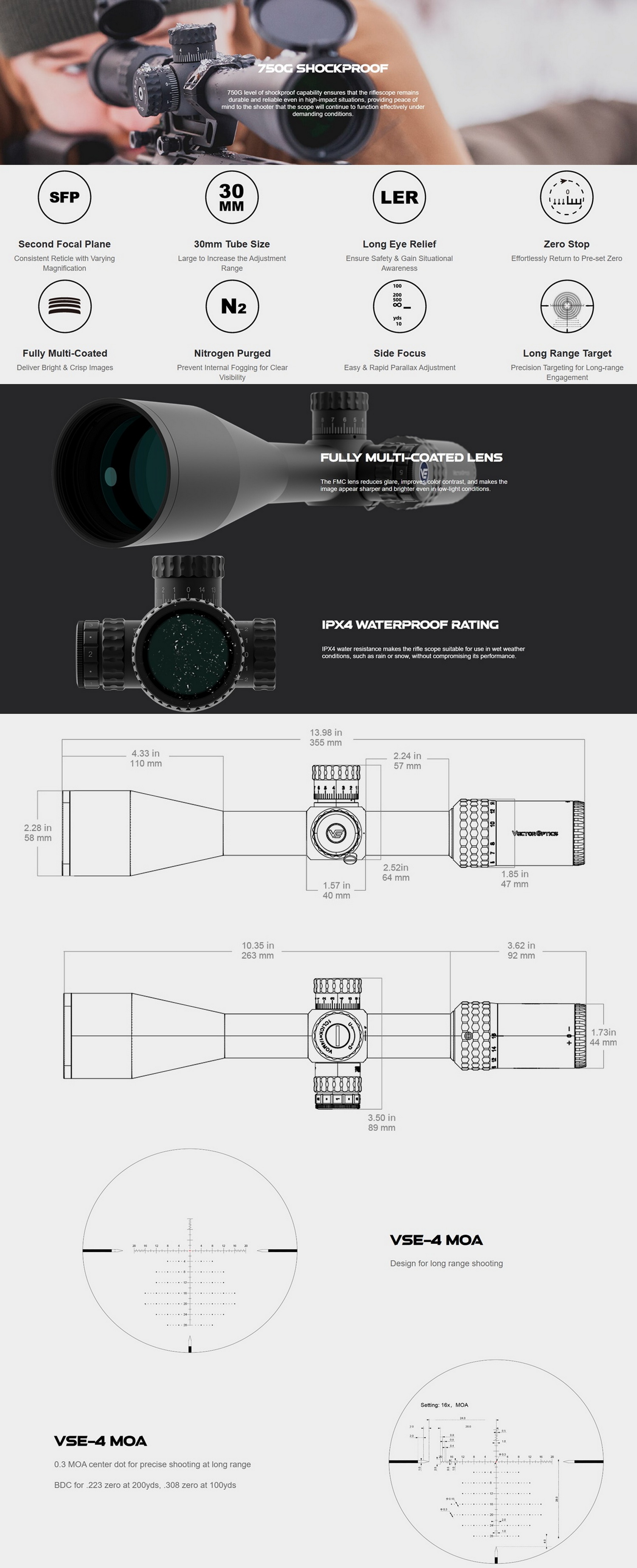 - อัตราการซูม 4 เท่า, ท่อ 30 มม., เรติเคิล VSE-4 MOA ให้จุดเล็งที่แม่นยำ