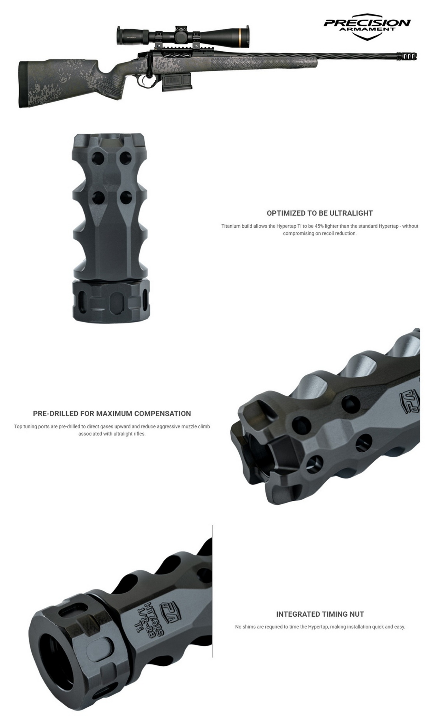 - The Hypertap Ti is designed specifically for ultra-light rifles, redefining performance in a compact, lightweight package. Constructed from aerospace-grade titanium,
