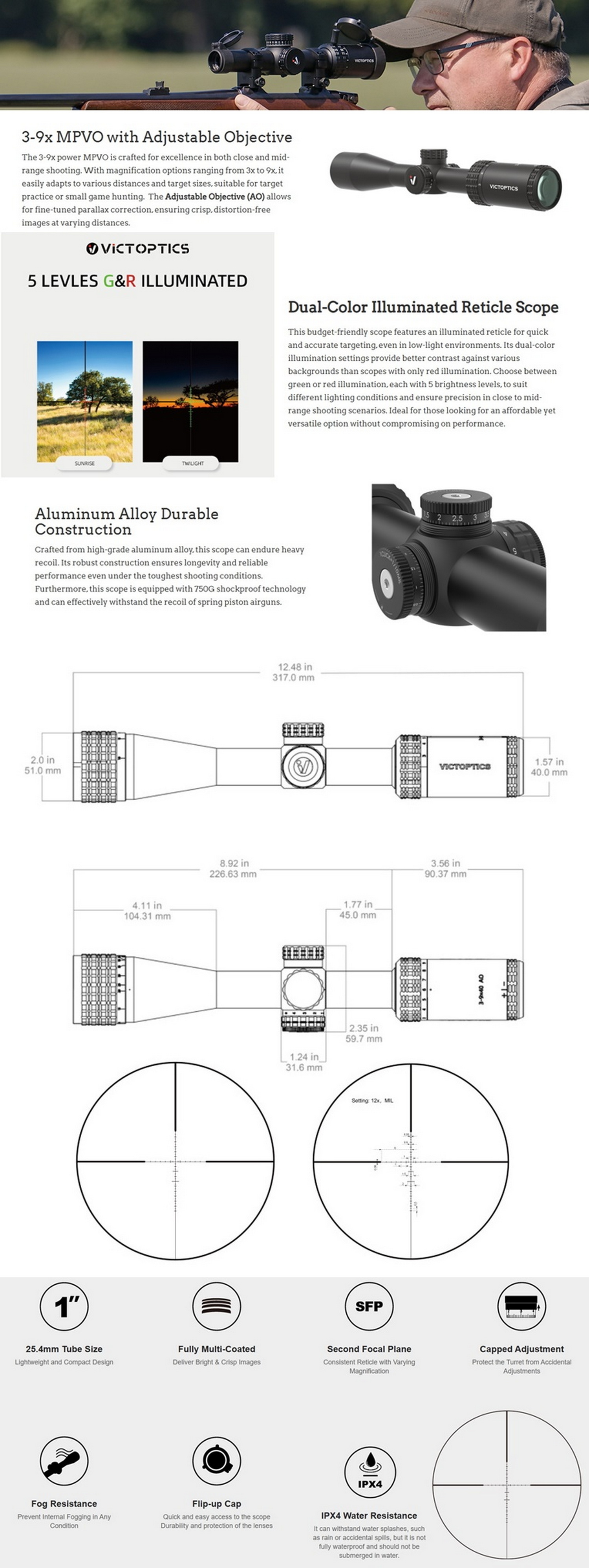 VICTOPTICS SOI 3-9x40 AO RIFLESCOPE