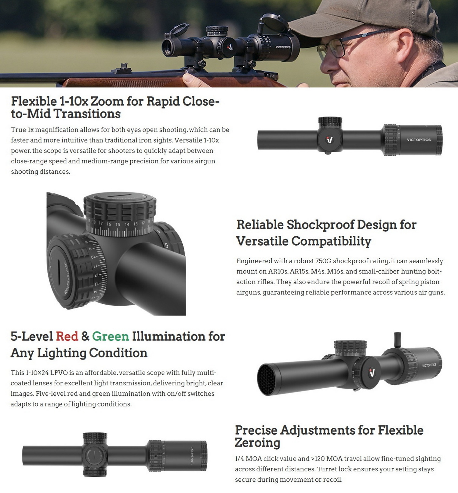 VICTOPTICS S10 1-10x24I FIBER RETICLE SCOPE