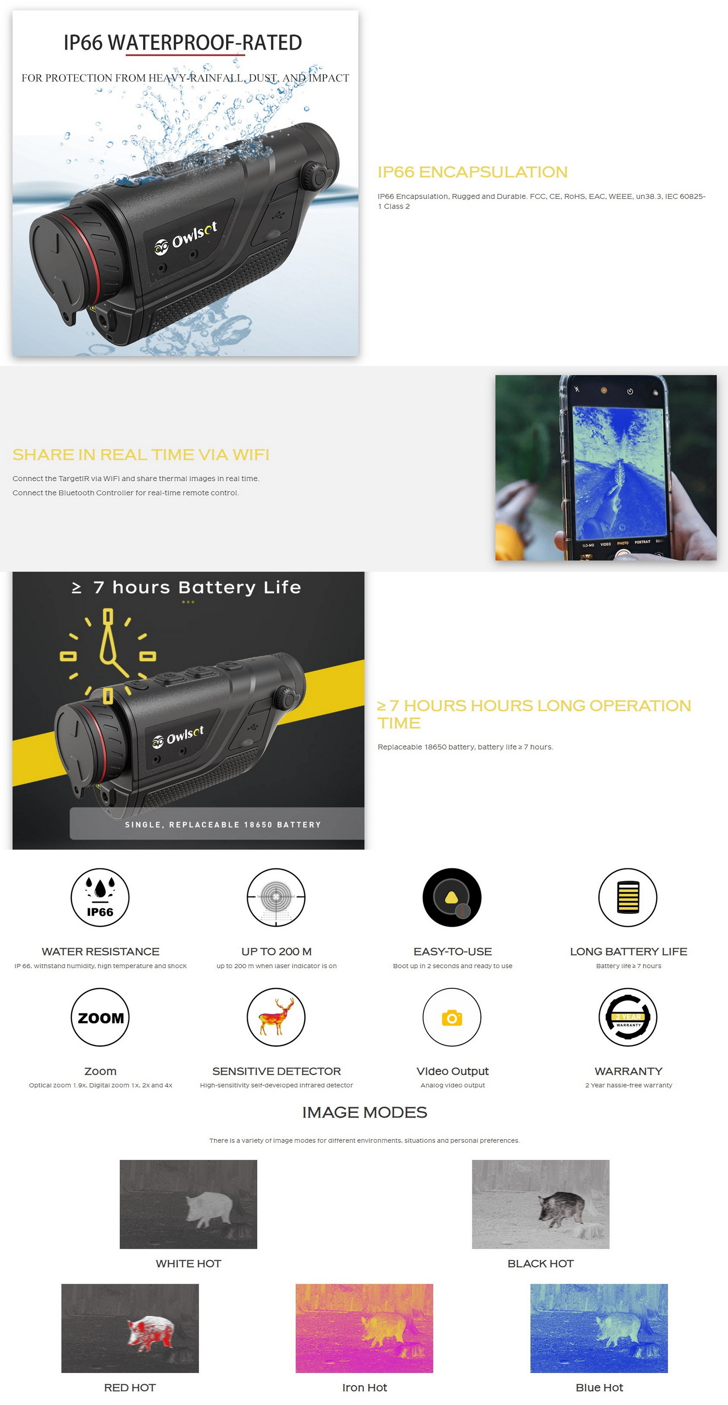 - PIP mode to highlight target clearly, connect App via WIFI to share anytime