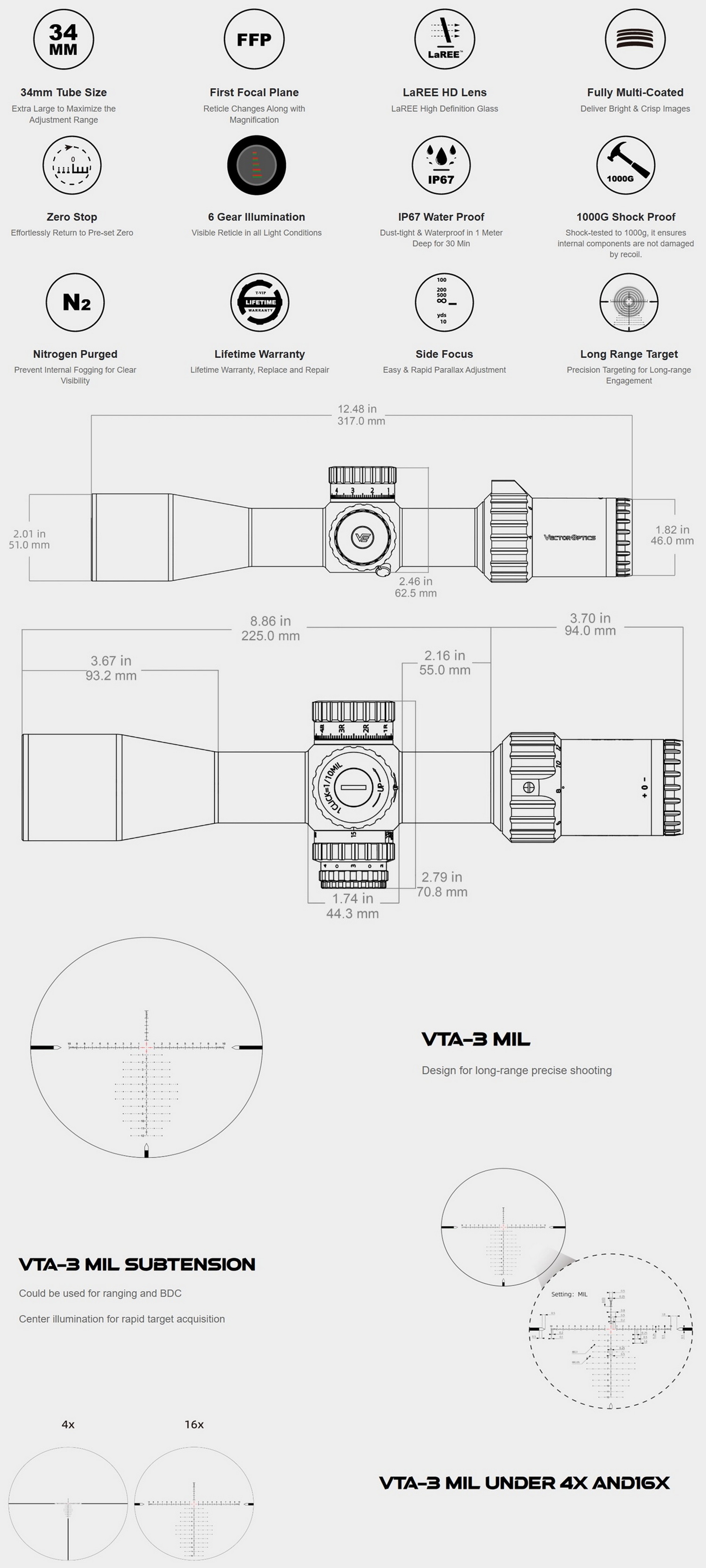 - เส้นเล็ง VTA-3 MIL สำหรับการยิงเป้าหมายที่แม่นยำ แสงส่องสว่างตรงกลางเพื่อการจับเป้าหมายอย่างรวดเร็ว