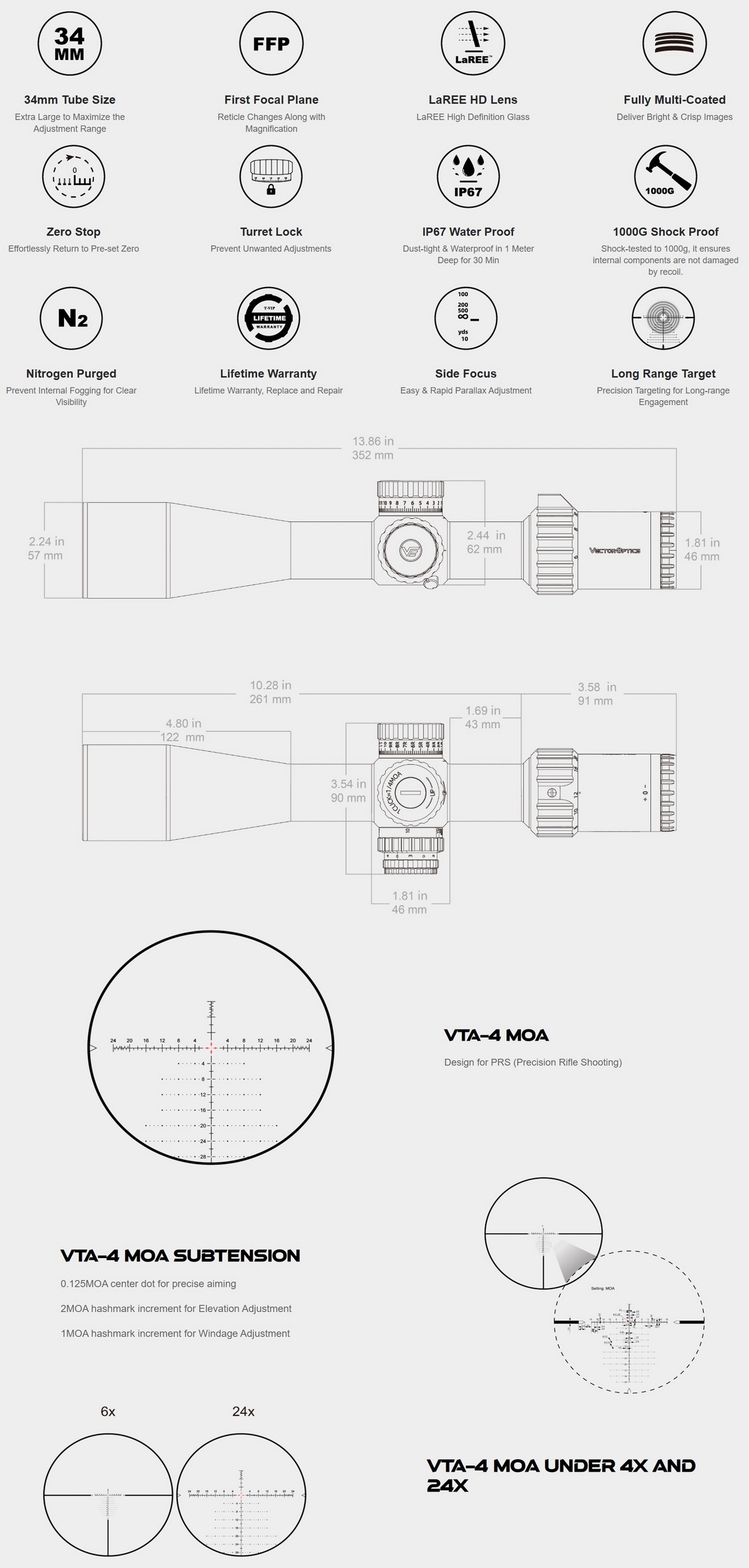 • ดีไซน์เรติเคิลจุด FFP VTA-4 MOA สำหรับการยิงปืนไรเฟิลที่แม่นยำ (PRS), จุดศูนย์กลาง 0.125MOA