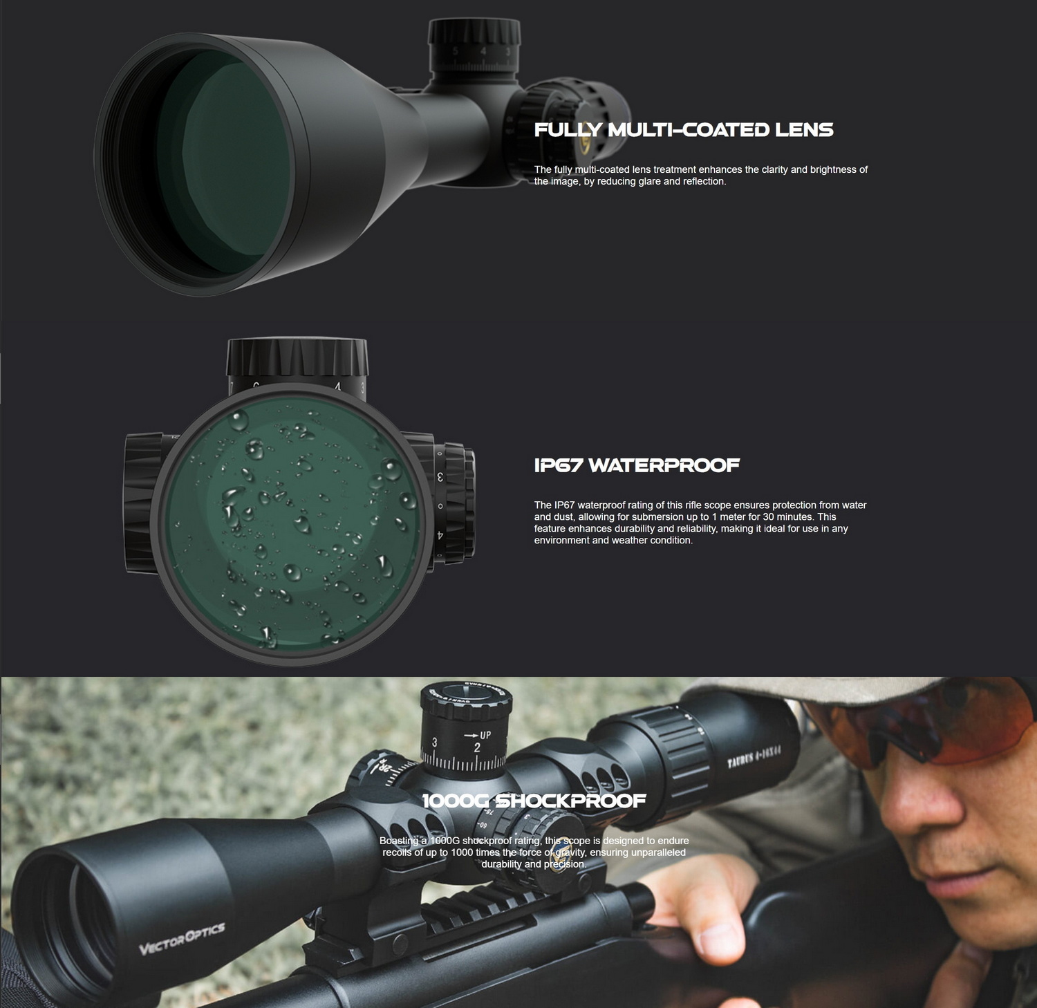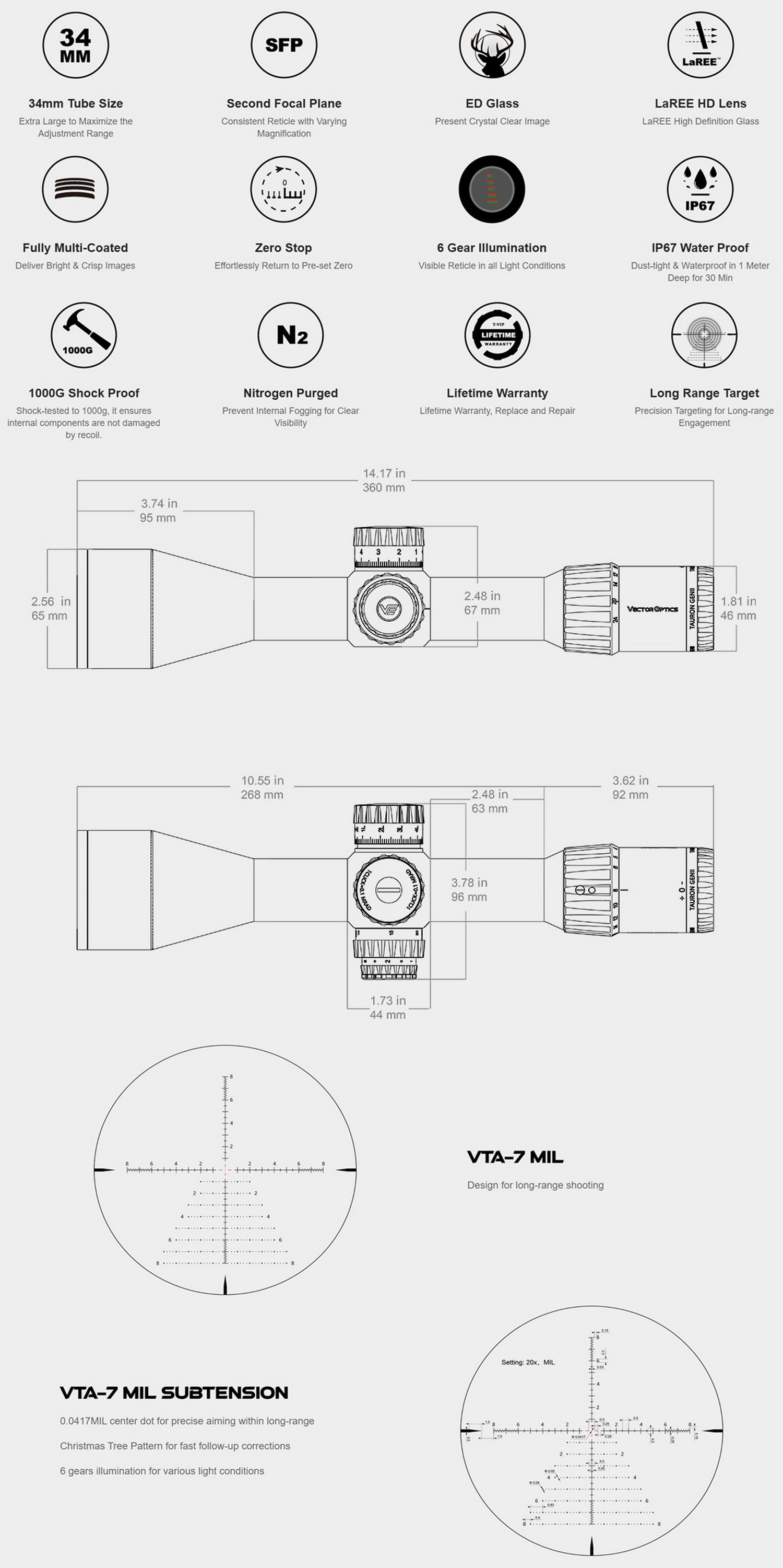 - ดีไซน์เรติเคิล VTA-7MIL สำหรับการยิงระยะไกล จุดศูนย์กลาง 0.0417MIL เพื่อการเล็งที่แม่นยำ