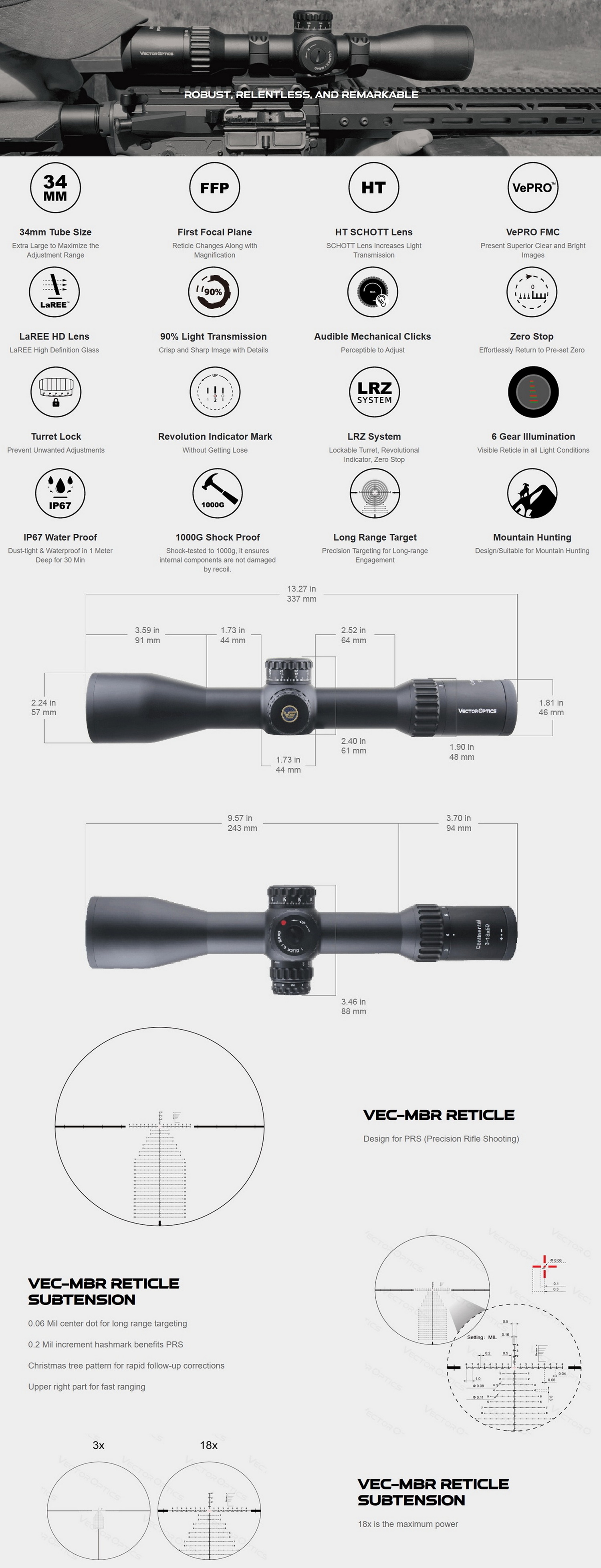 - เส้นเล็ง FFP VEC-MBR ลายต้นคริสต์มาส เครื่องหมายแฮชมาร์คเพิ่มขึ้น 0.2 มิล จุดกึ่งกลาง 0.06 มิล ออกแบบมาสำหรับการยิงปืนไรเฟิลแม่นยำ (PRS)