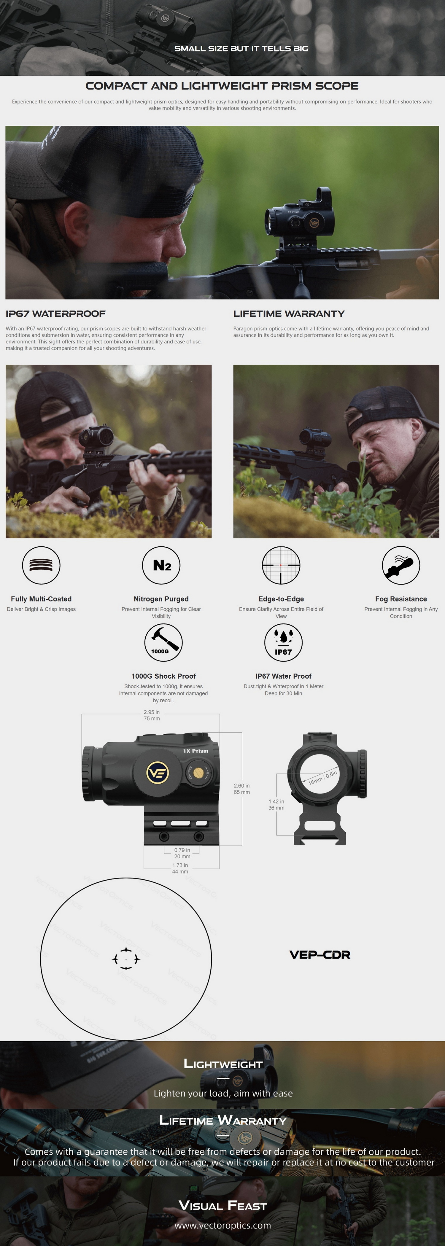 - ระยะการมองที่สบายตา 3.0 นิ้ว / 76 มม. พร้อมช่องมองภาพขนาดใหญ่เพื่อความยืดหยุ่นในการจัดวางตำแหน่งการยิง