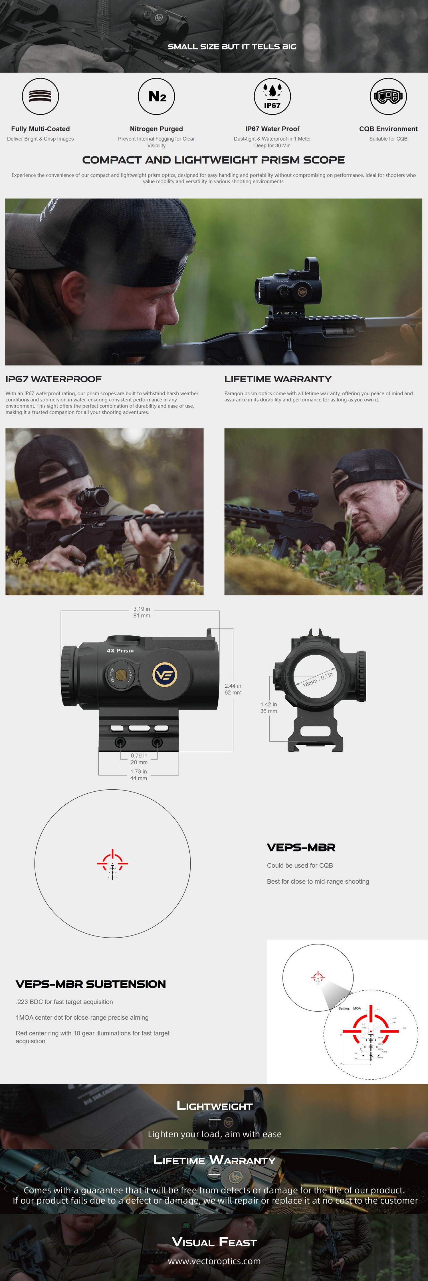 • กล้องปริซึม 4x เหมาะสำหรับ CQB, ใช้งานง่ายสำหรับสายตาเอียง, ขจัดเอฟเฟกต์แสงกระจายจากจุดศูนย์กลาง