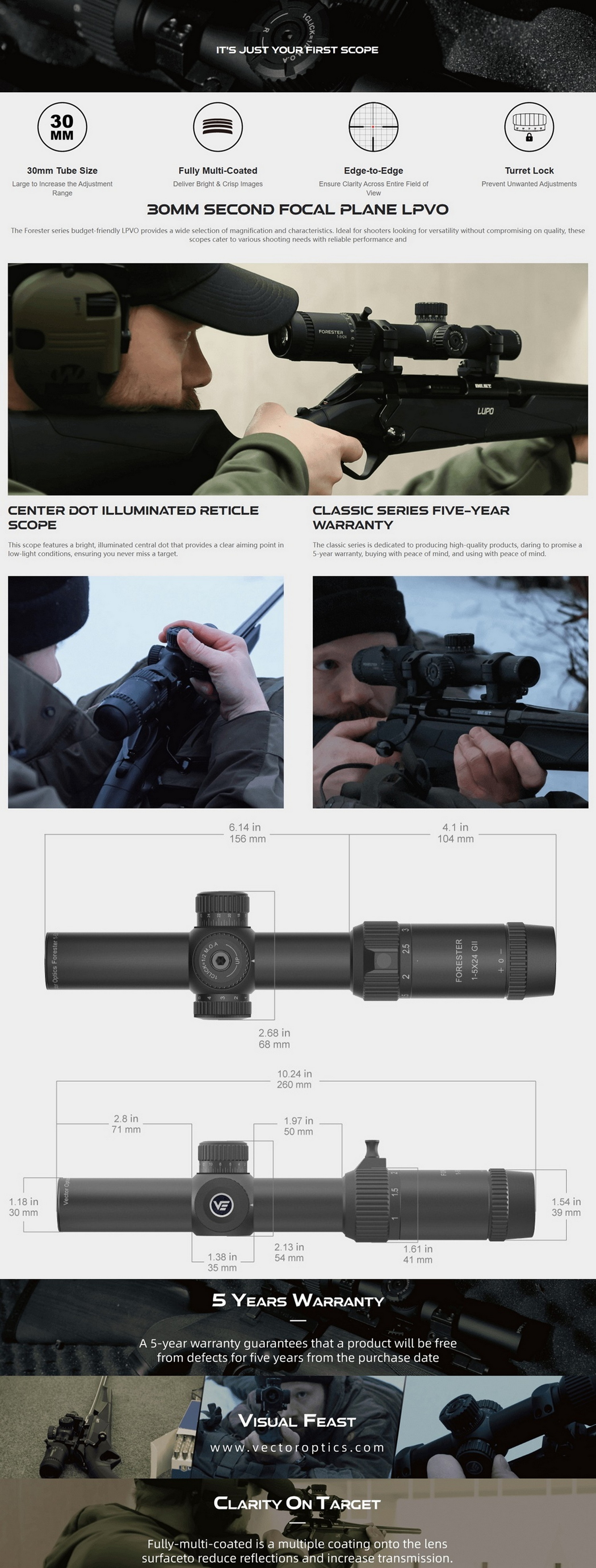 - 30mm Monotube, Direct Adjust 1/2MOA, Wide F.O.V, Extreme Clear & Edgeless Image,