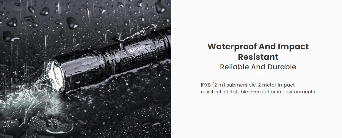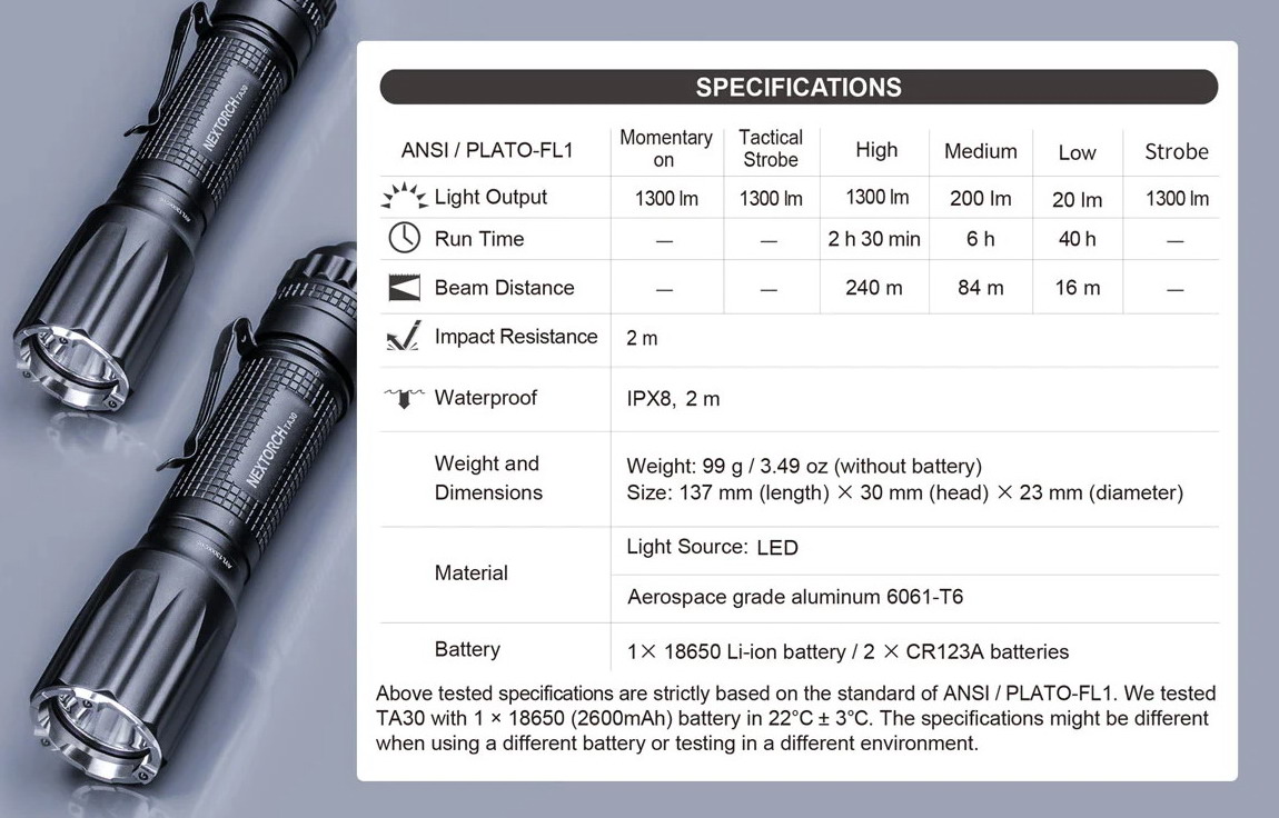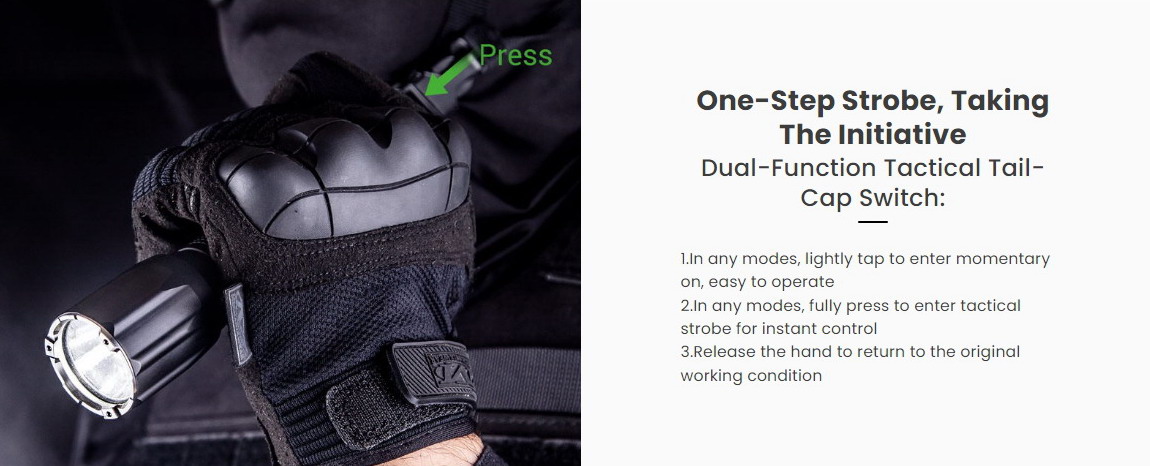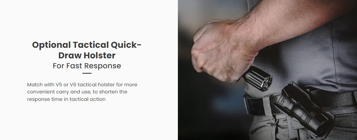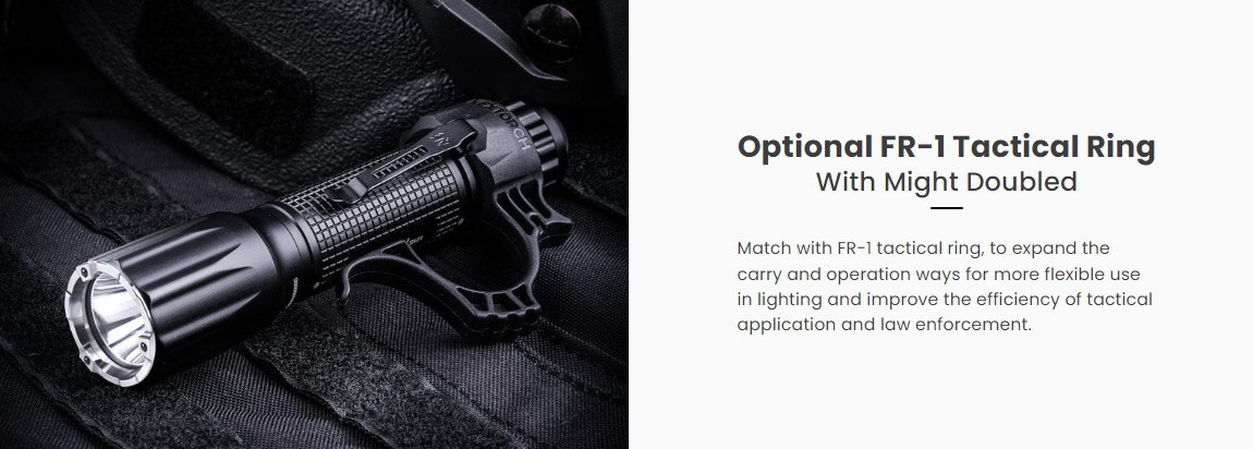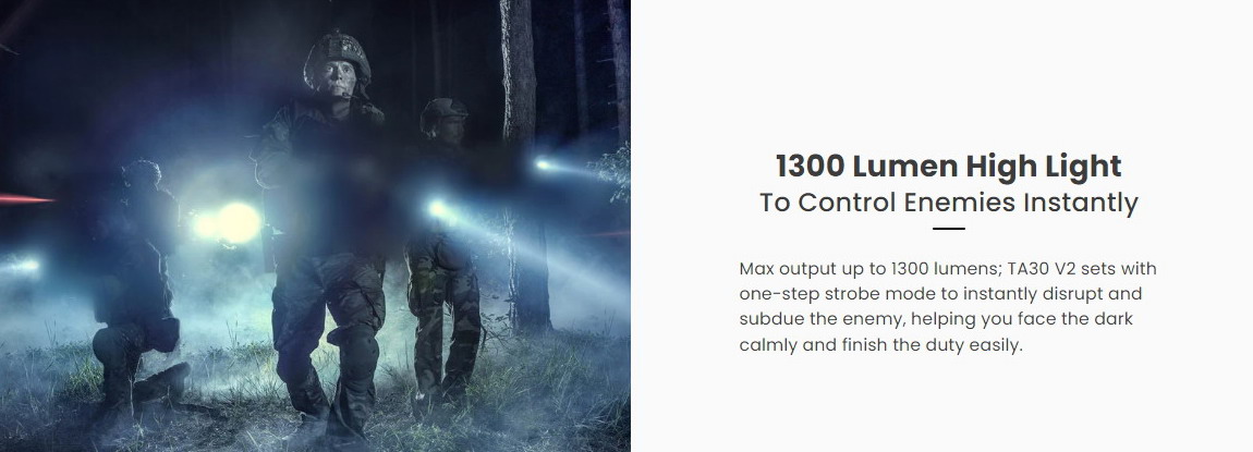 - ไฟฉายความสว่างสูงขึ้นถึง 1300 ลูเมน เป็นไฟฉายด้านยุทธวิธีที่