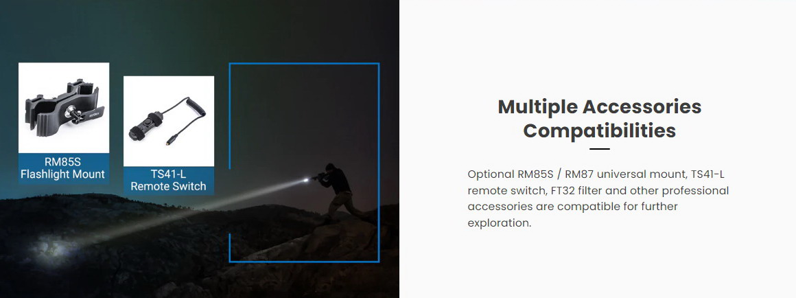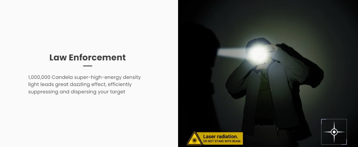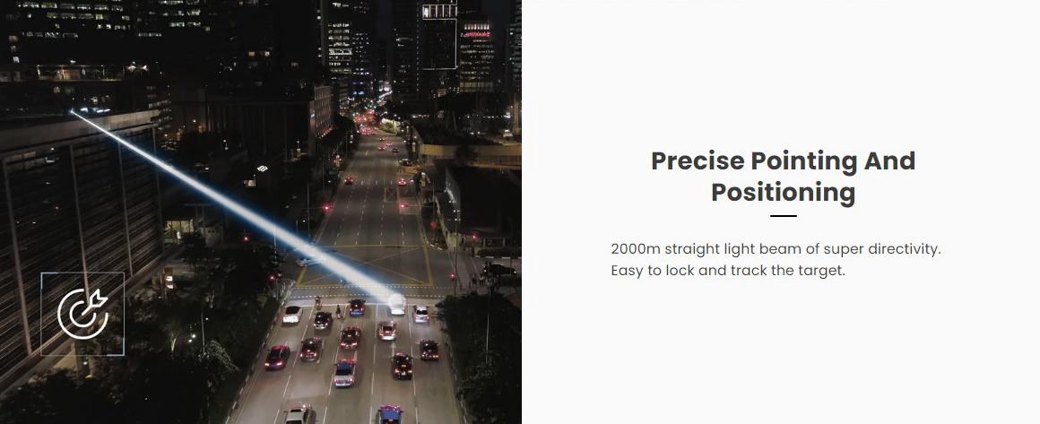 - ด้วยการออกแบบเลนส์รวมแสงได้อย่างมีประสิทธิภาพส่งผลให้แสงเดินทางได้ไกลถึง 2000 เมตร