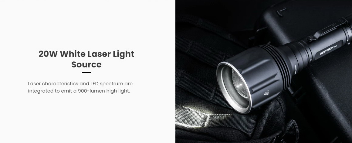 - ไฟฉายหลอดเลเซอร์แสงสีขาว ความสว่าง 900 lumens