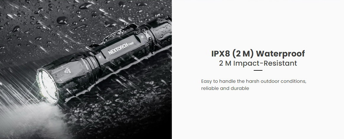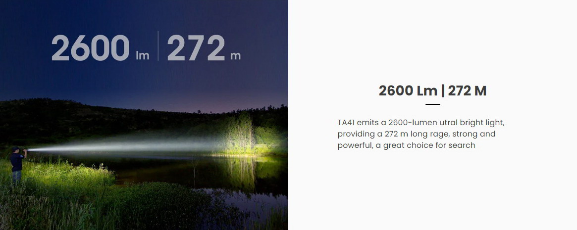 - ให้ระยะแสงส่องไกลถึง 272 เมตร ตัวไฟฉายออกแบบให้มีความแข็งแกร่งและทรงพลัง