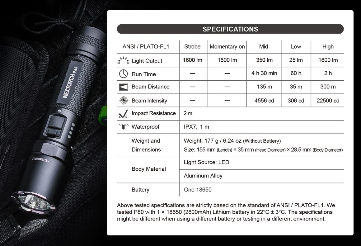 - คุณยังสามารถจับคู่ P80 กับอุปกรณ์เสริมที่สามารถเลือกได้ เช่น ซองใส่ไฟฉาย ฯลฯ
