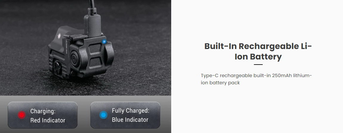 - ไฟติดปืนสั้นแบบชาร์จไฟในตัวที่มีขนาดเล็กและเบา