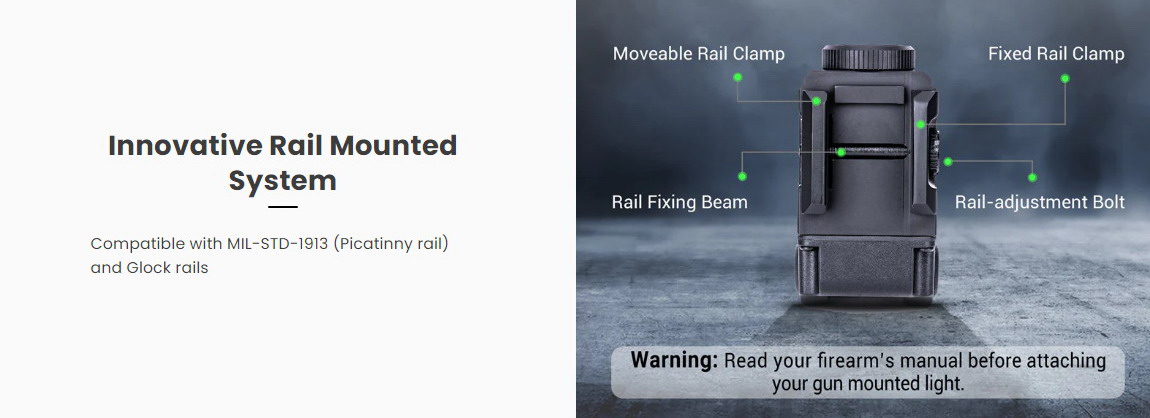 - เหมาะกับปืนขนาด 3-4 นิ้ว ที่มีรางด้านหน้า