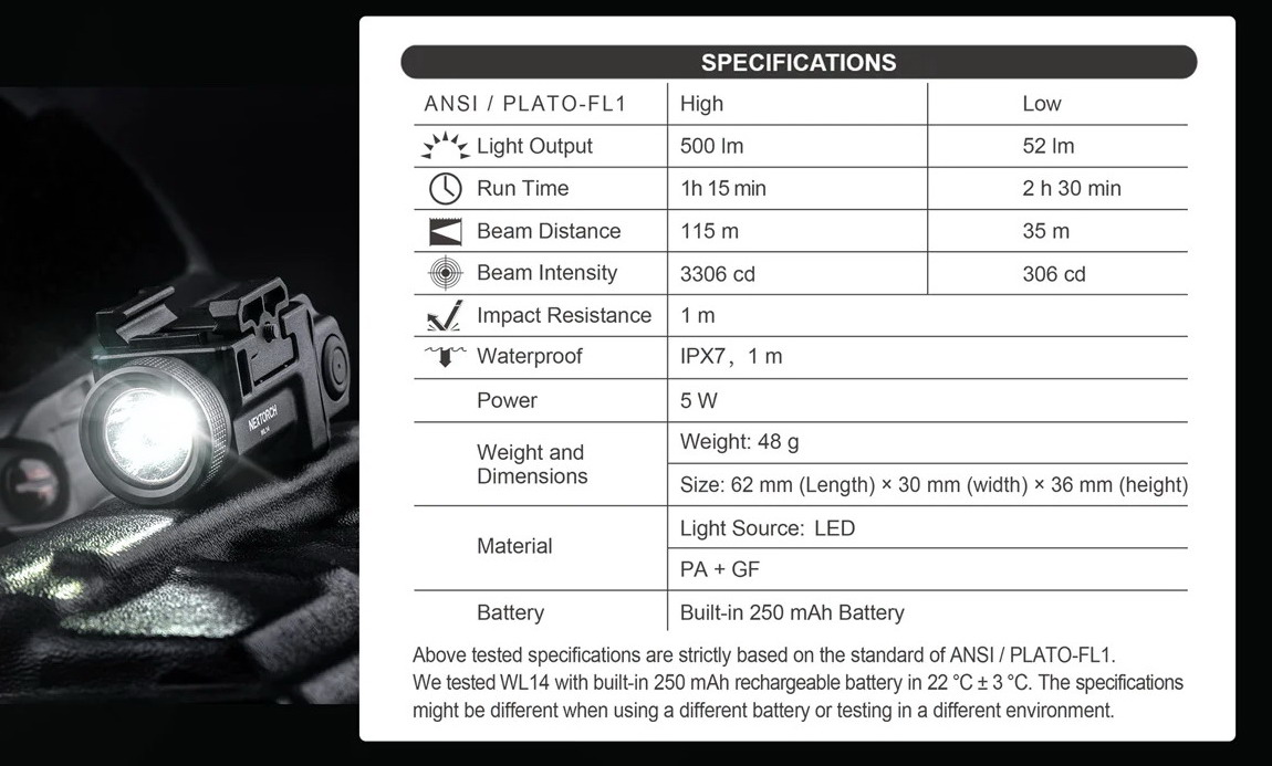 WL14 500 LUMEN MINI WEAPON LIGHT