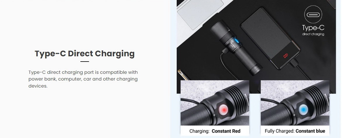 - การออกแบบการชาร์จในตัวด้วยช่อง USB Type-C ทำให้การชาร์จไฟเร็วยิ่งขึ้น