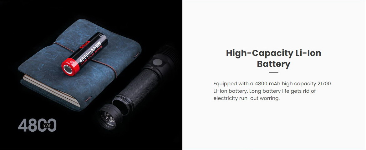 - แบตเตอรี่:4800mAh 21700 Li-ion battery
