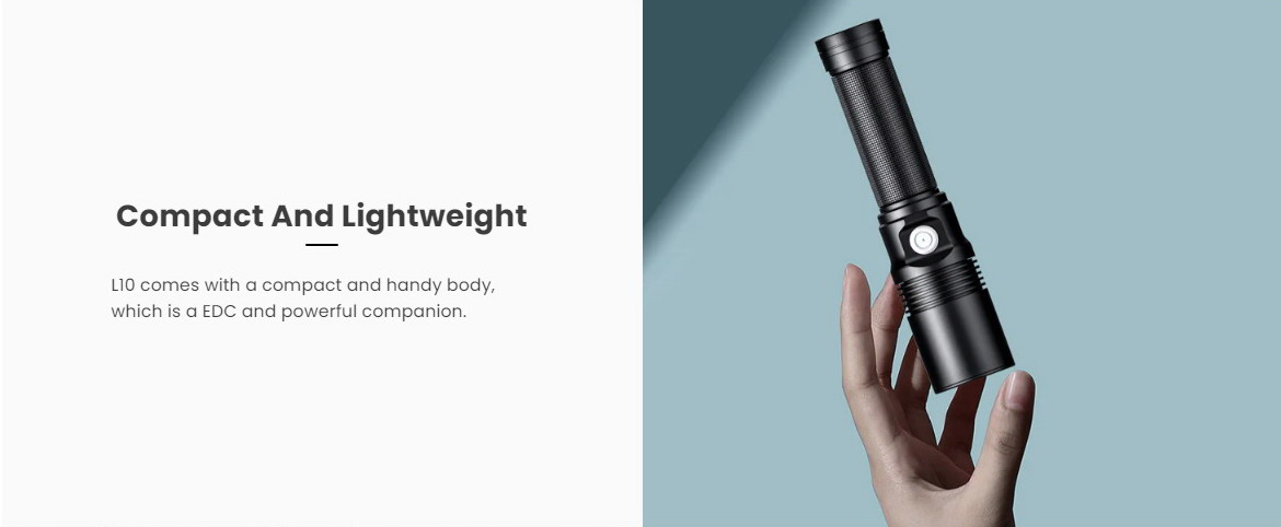 - สามารถใช้งานด้วยมือเดียวและพกพาสะดวก เนื่องจากตัวไฟฉายมีขนาดกะทัดรัดและน้ำหนักเบา