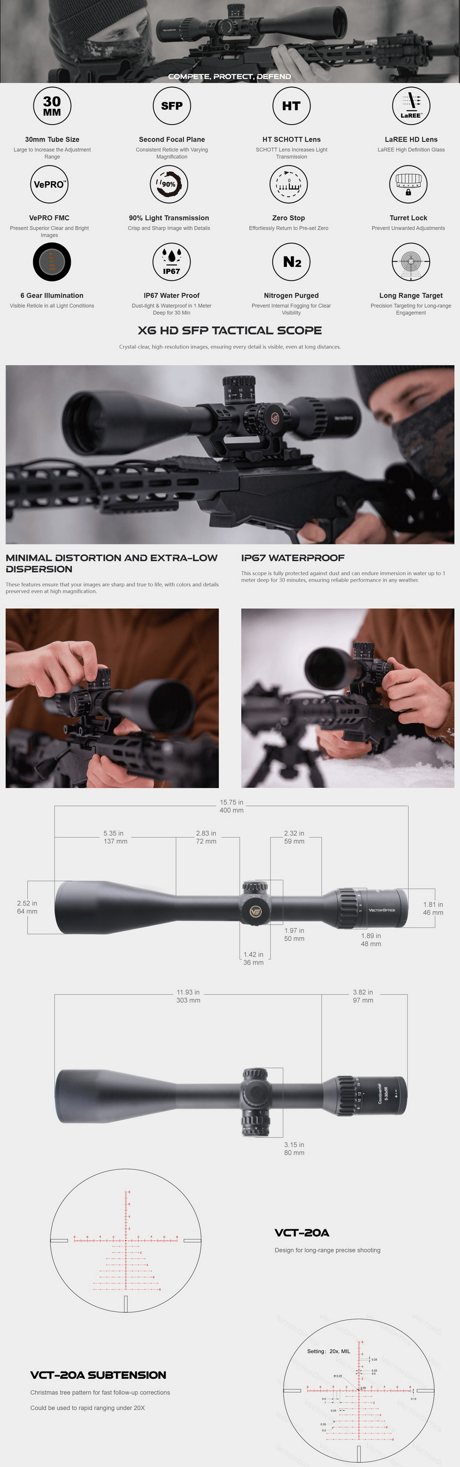 - สิ่งของในบรรจุภัณฑ์: แหวนสูง Picatinny ขนาด 30 มม., คู่มือ, ป้อมปืนปรับระดับความสูงสำรอง DIY, ฝาปิดเลนส์ และผ้าเช็ดเลนส์ ฯลฯ