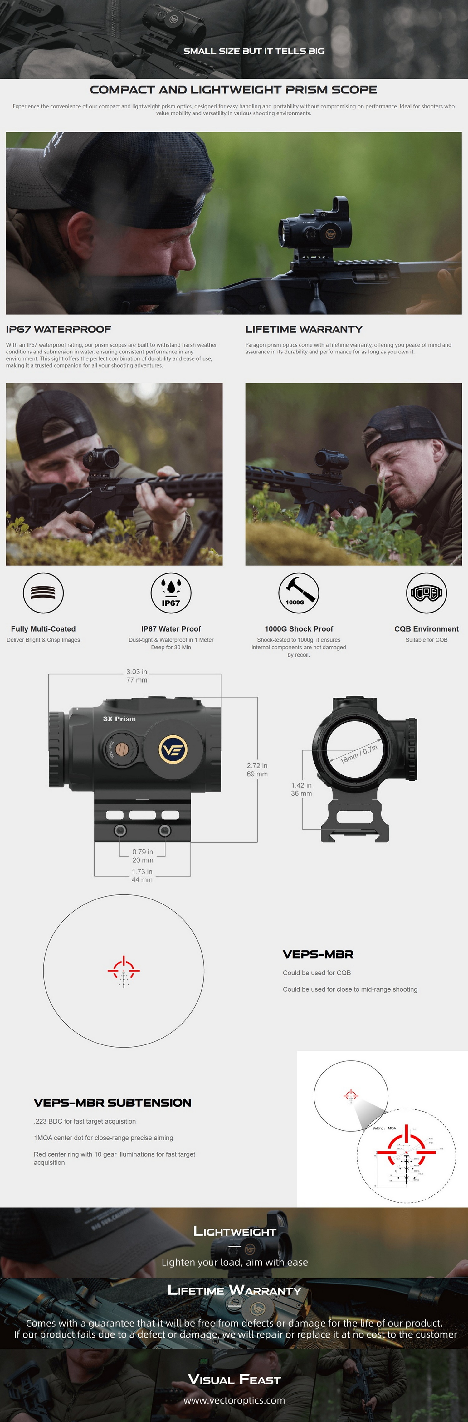 - ขนาดกะทัดรัด CQB Prism Optics 77 มม.