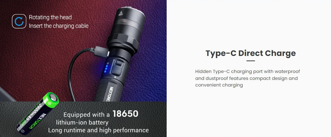 - การชาร์จโดยตรง Type-C ที่ซ่อนอยู่ กันน้ำ
